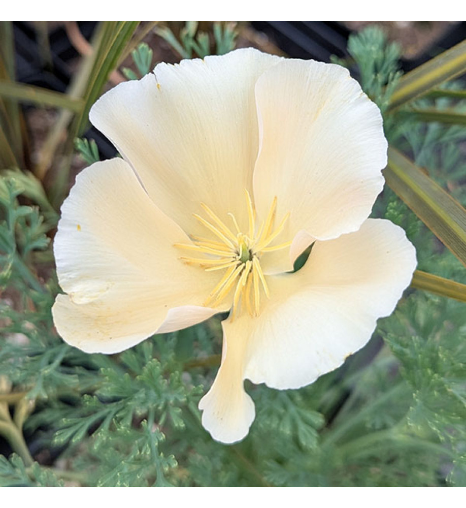 Californian poppy. A lovely short lived perennial that has delicate divided silvery green leaves and long flower stalks holding apricot orange to pink satin like poppy flowers through summer followed by long thin seed pods. Great for adding a splash of colour to the garden. Height and spread to around 45cm x 25cm. Well drained soil in sun or light shade.