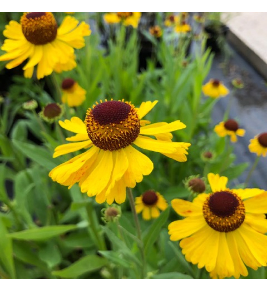Wesergold is a bushy, erect perennial with sturdy flower stems from mid to late summer that hold masses of bold, golden yellow flowers with brown centres that mature to yellow. Any moist, well drained fertile soil in sun or light shade. Height 80cm, spread 60cm.