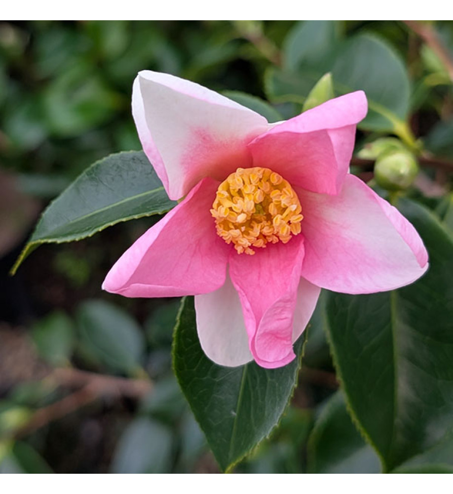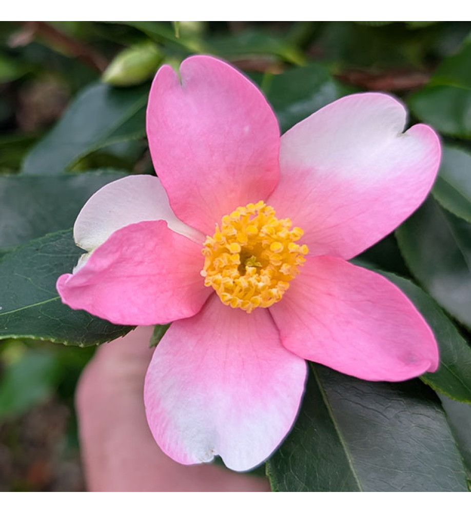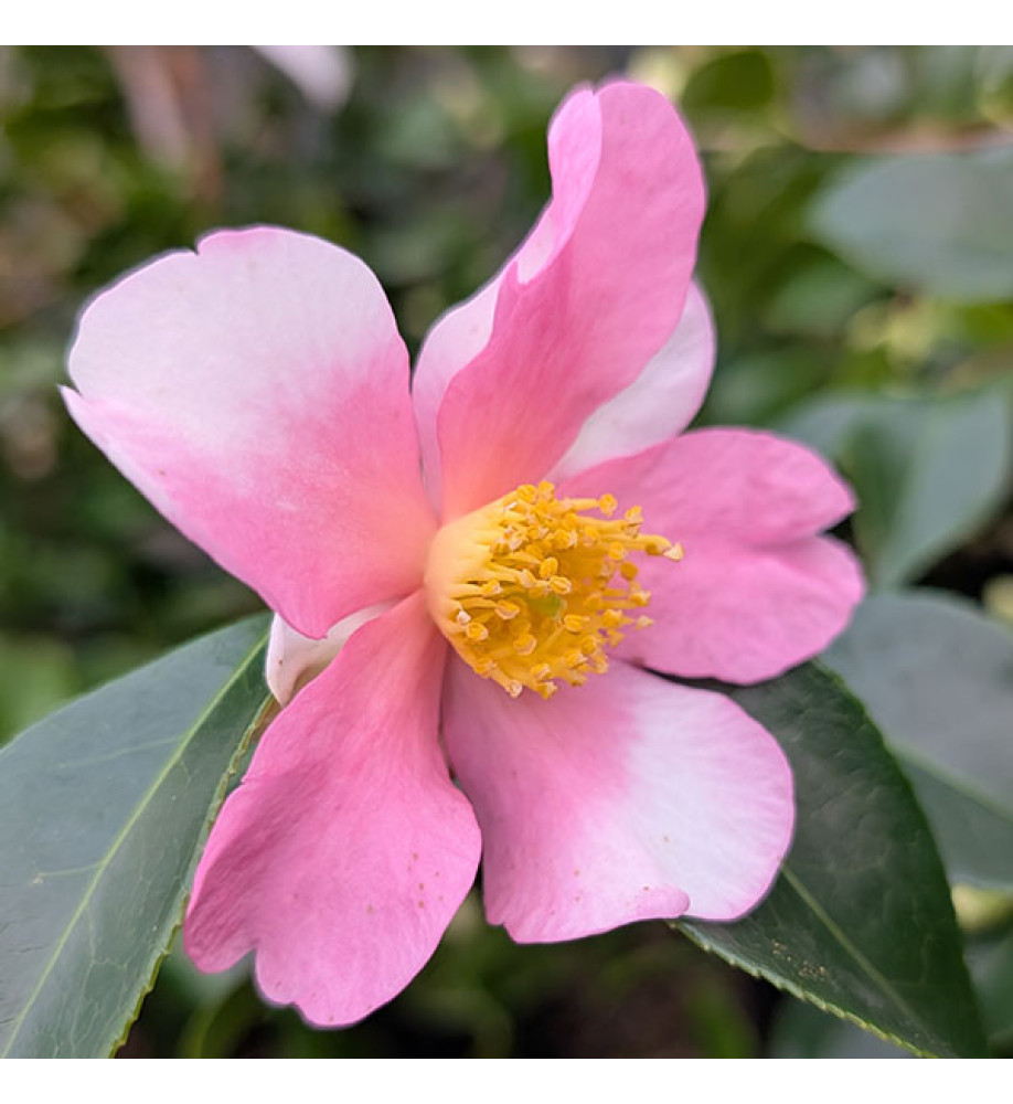 Glossy deep green leaves to this new variety that has a long flowering season from December into spring. Delicate pink flowers splashed with white adorn the bush. Great for growing in a pot or in the ground in neutral to acid soil. Height and spread to around 4m