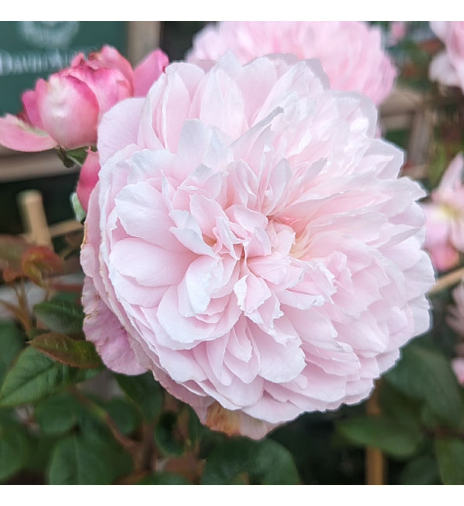 English Climbing Rose. Plentiful loose semi double flowers of light pink open to show off their golden stamens. This rose is noted as best for flowering producing large open sprays of flowers well right through the season. Strong healthy growth to around 3.75m. An almost thornless variety with a slight old rose smell. Any fertile soil and any aspect.