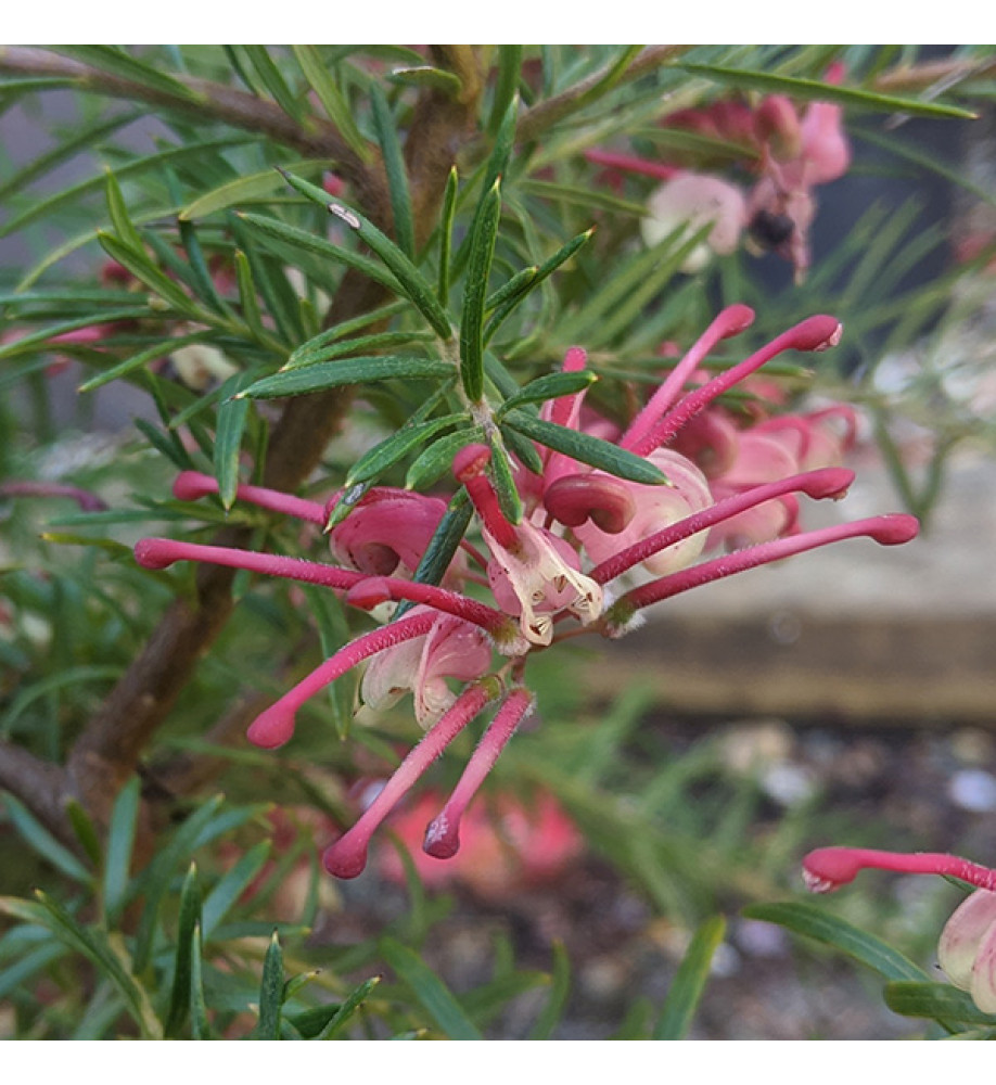 Vigorous bushy shrub that produces dense racemes of waxy, pinkish red flowers throughout the summer. Height and spread to around 3m when mature but can be kept much smaller by pruning.