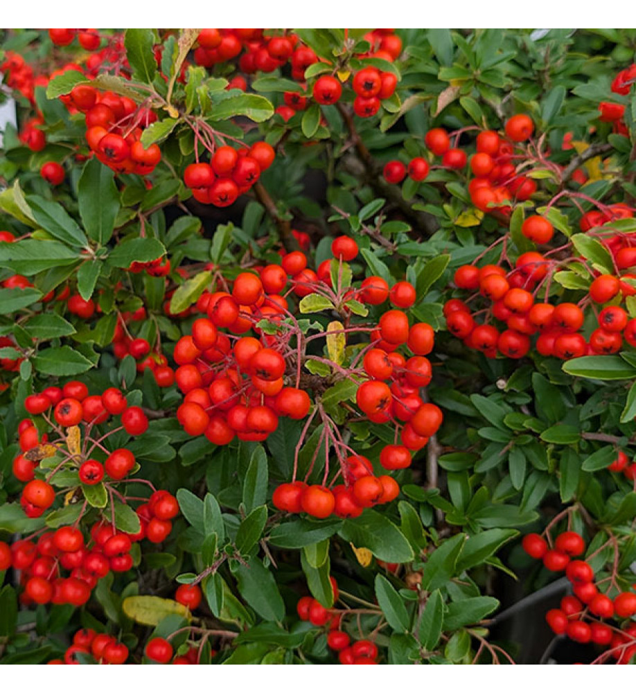 This is a good ground cover plant, which has neat glossy foliage. The flowers are white in spring, turning to beautiful red berries to give autumn colour. Any soil in sun or part shade. Height 0.5-1m Spread 2m