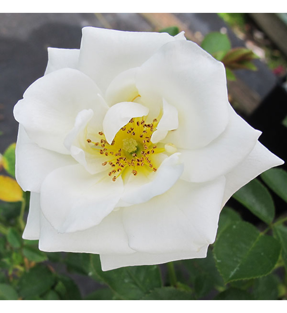 Ground cover rose with semi-double white flowers and shiny dark green leaves. Repeat flowers all summer long. Healthy growth and good disease resistance. Height and spread to around 60cm x 1m. Trim with hedgecutters at the end of the season or in early spring